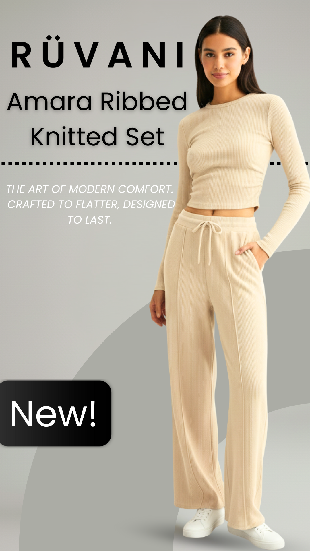 The Amara Ribbed Knitted Set is crafted from a soft, sculpting rib-knit that flatters every curve while feeling effortless to wear.