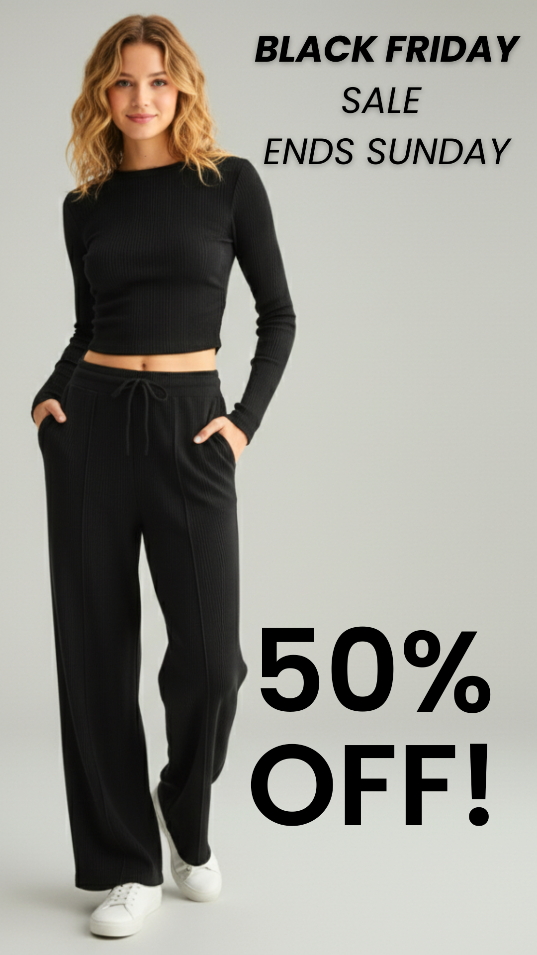 The Amara Set is crafted from a soft ribbed knit blend of polyester and spandex, giving it a smooth, cozy feel with just the right amount of stretch. It’s lightweight yet warm — perfect for lounging or everyday wear.